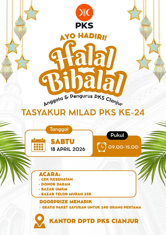 Cianjur.pks.id – Cianjur. Dalam rangka memperkuat Ukhuwah di kalangan Kader PKS Cianjur, Dewan Pimpinan Tingkat Daerah (DPTD) PKS Kabupaten Cianjur mengadakan Acara Halal Bihalal di Penghujung Bulan Syawal 1446H Hari Sabtu yang bertepatan dengan Tanggal 18 April 2026. Agenda ini diselenggarakan di Kantor DPTD PKS Kabupaten Cianjur dengan Agenda yang sebagai berikut:
